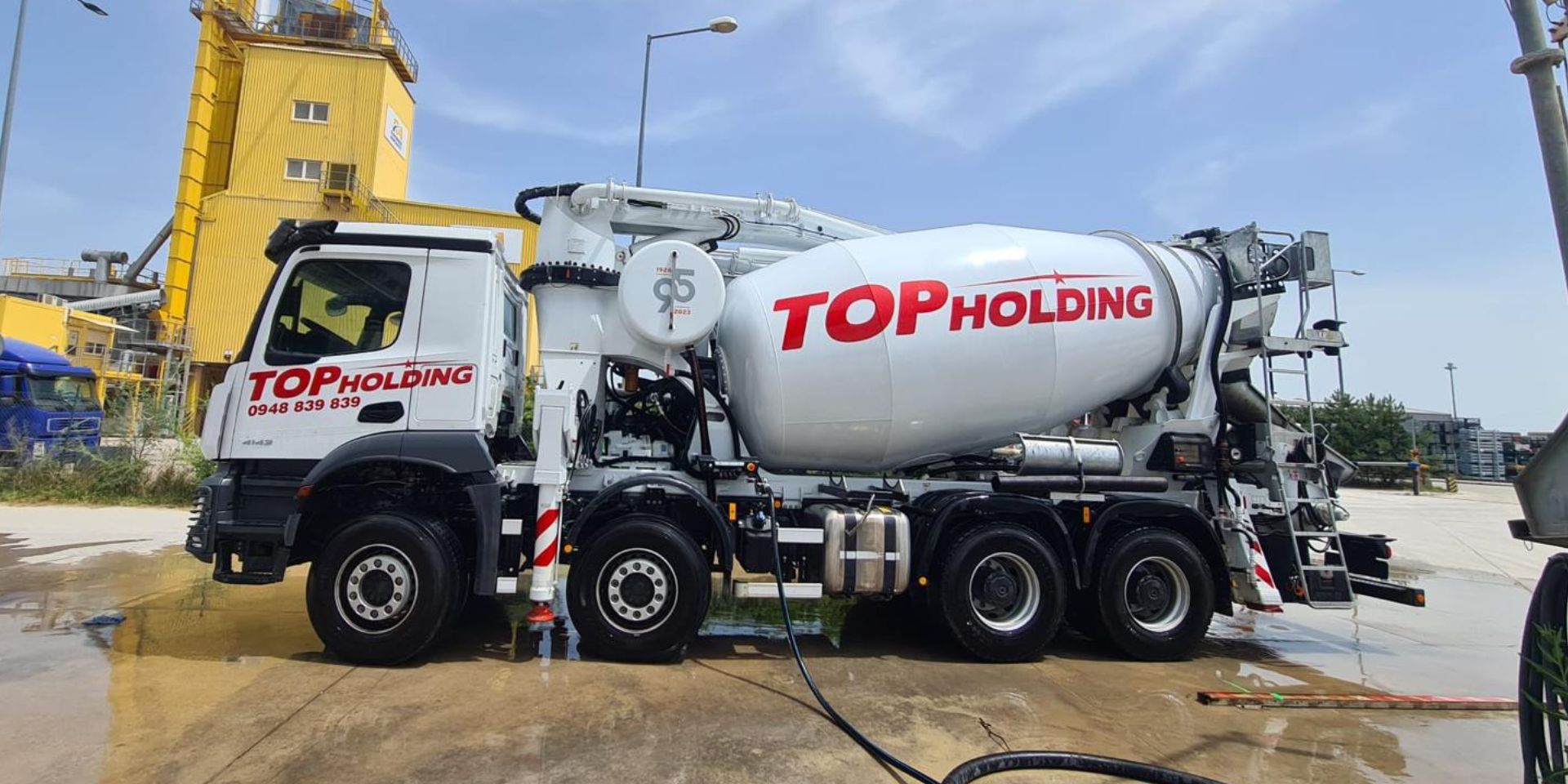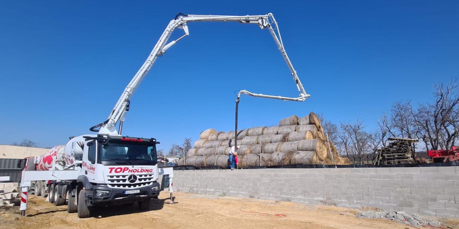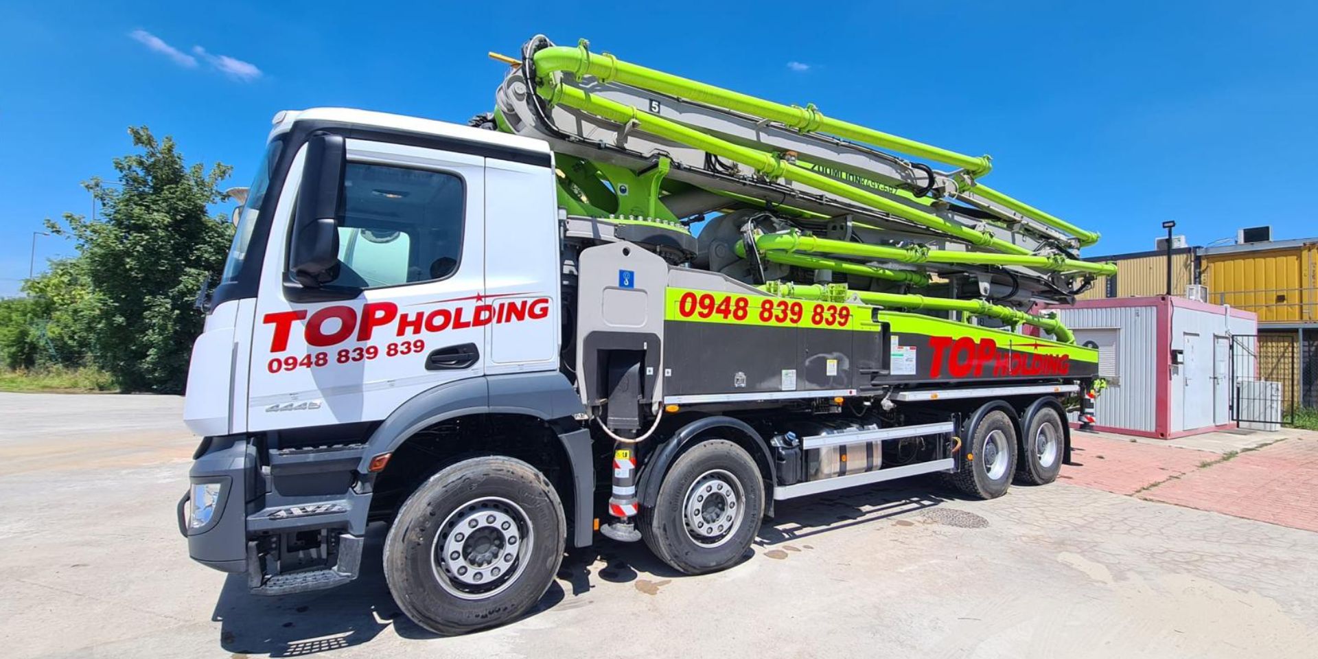 na podvozku Mercedes – Benz Arocs je stroj jedinečný svojho druhu. S dĺžkou ramena 49 metrov načerpá betón do vysokých poschodí tak i do diaľky. Ako 1. na Slovensku vlastníme v našom vozovom parku tento unikátny nový stroj.