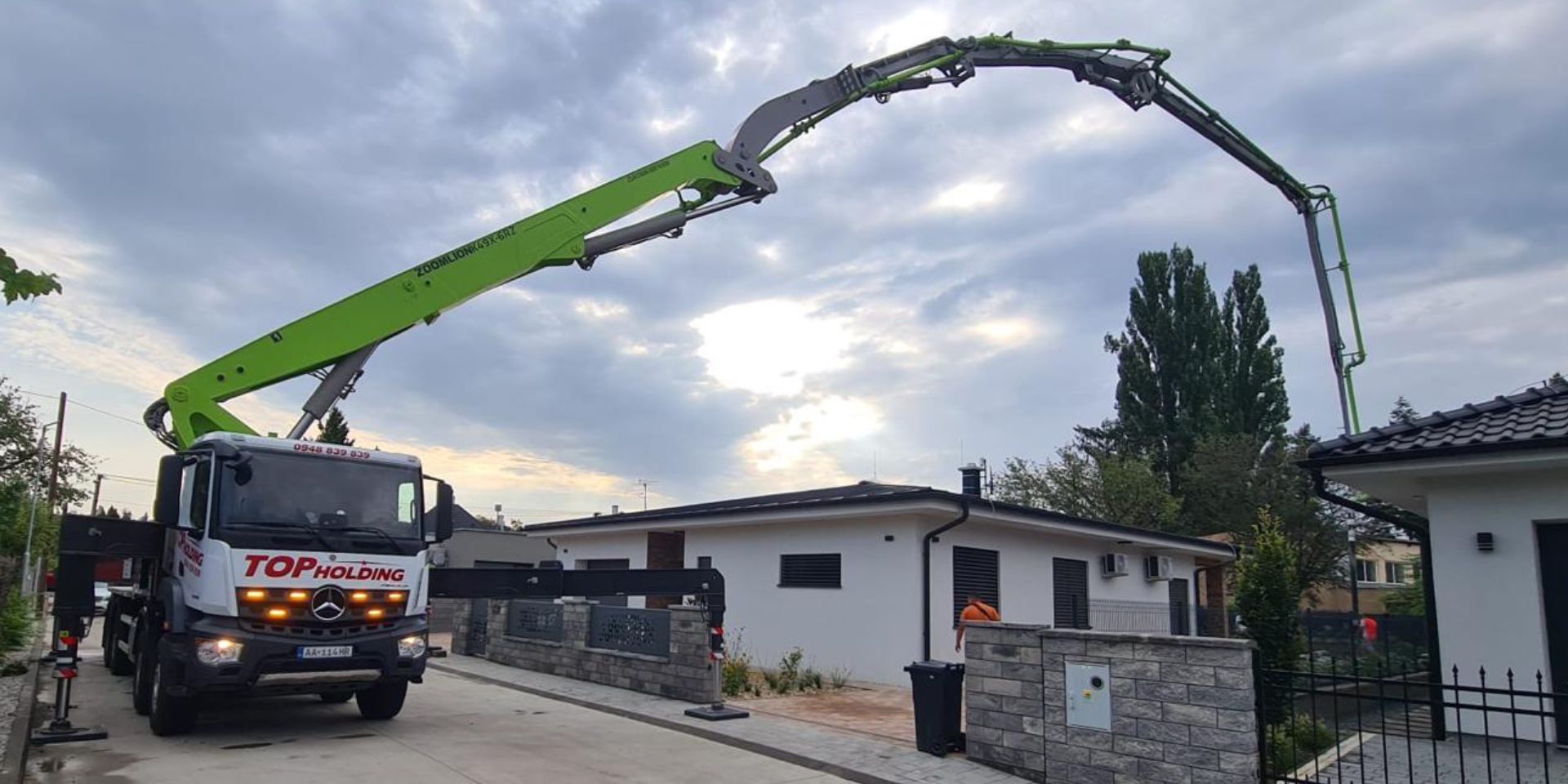 na podvozku Mercedes – Benz Arocs je stroj jedinečný svojho druhu. S dĺžkou ramena 49 metrov načerpá betón do vysokých poschodí tak i do diaľky. Ako 1. na Slovensku vlastníme v našom vozovom parku tento unikátny nový stroj.